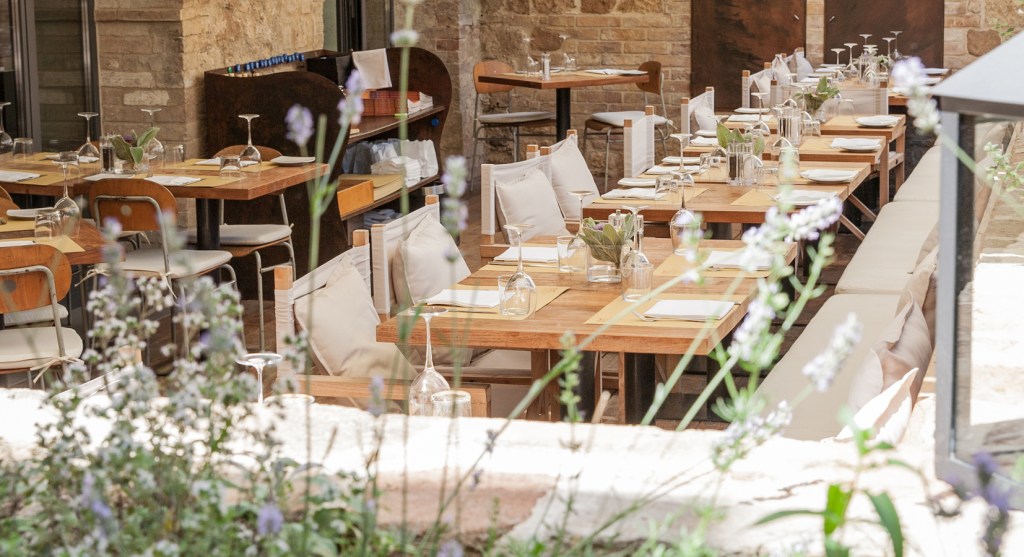 The estate’s two restaurants focus on seasonal, biodynamic ingredients grown onsite, paired with regional wines and house-made olive oil.