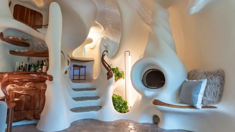 This architectural wonder looks like it belongs in a fairytale. With no straight lines and a design that blends art, fantasy, and function, the Bloomhouse is a one-bedroom hideaway perfect for creative spirits or couples seeking something truly unique. Just minutes from downtown Austin but completely secluded in nature.