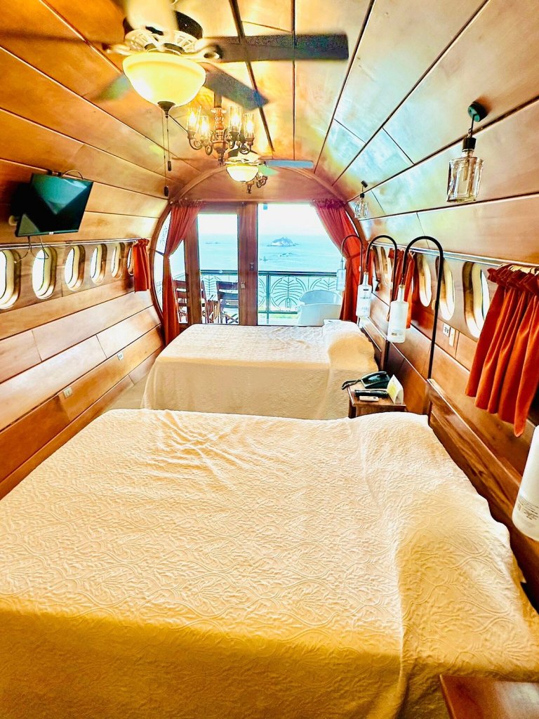 This fully restored 1965 Boeing airplane is perched 50 feet above the jungle floor. It has been transformed into a two-bedroom tropical villa, complete with teak interiors and a wooden deck looking over the ocean. It’s surrounded by lush wildlife — think toucans, monkeys, and vibrant jungle vibes.