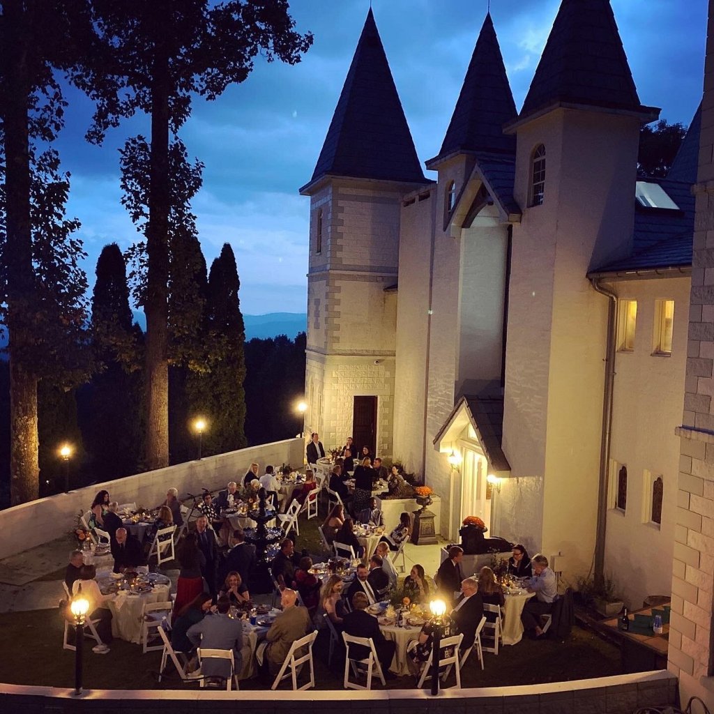 A real castle nestled in the Blue Ridge Mountains, complete with turrets, private chefs, and panoramic views. Perfect for special occasions, weddings, or simply living out your royal fantasy. The estate includes trails, gardens, and plenty of space to relax or celebrate.