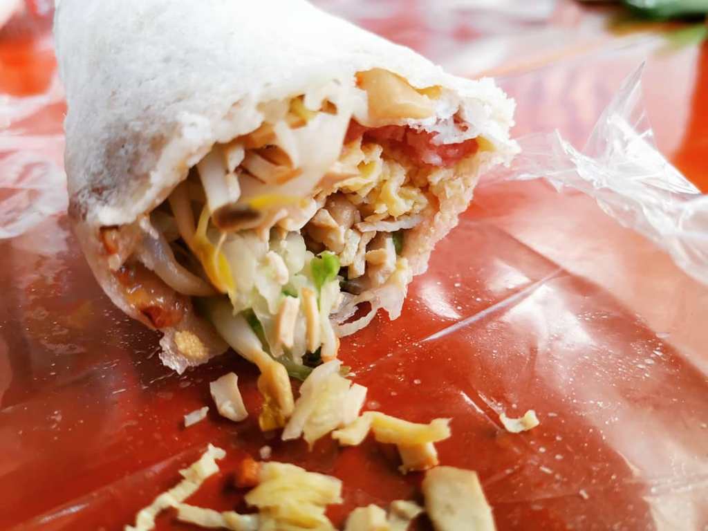 The spring rolls are made fresh right in front of you, tightly wrapped and bursting with flavor. Each roll is packed with shredded veggies, savory meat floss, and crunchy ground peanuts, all wrapped in a soft yet slightly chewy rice wrapper. The mix of textures is what makes it so addictive—crunchy, creamy, nutty, and fresh in every bite.